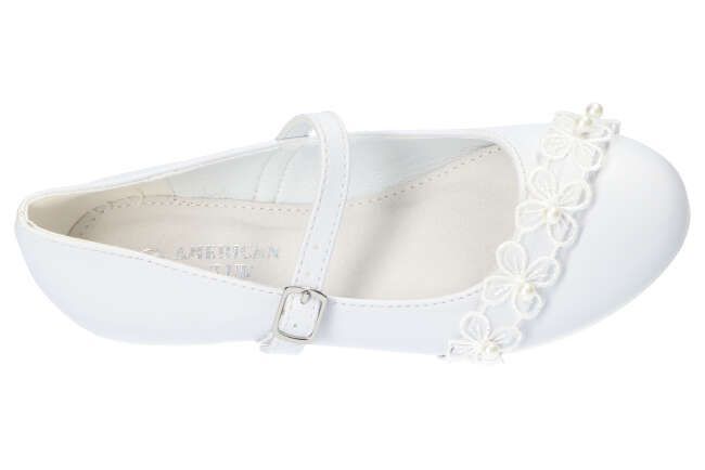 NOWE, WYGODNE, SOLIDNIE WYKONANE BUTY KOMUNIJNE MARKI AMERICAN CLUB. WKŁADKA ZOSTAŁA WYKONANA ZE SKÓRY NATURALNEJ. BUTY POSIADAJĄ PIĘKNY KLASYCZNY BIAŁY WZÓR IDEALNE NA WSZELKIEGO RODZAJU PRZYJĘCIA OKOLICZNOŚCIOWE- ZAPEWNIAJĄ WYGODĘ I KOMFORT UŻYTKOWANIA.